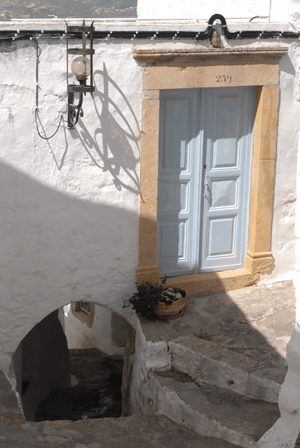 Und schließlich laden die jahrhundertealten Gassen und Gässchen zu einem Spaziergang durch die Zeit ein. Allerdings nicht zu lange, denn die weißgekalkten Wände strahlen die Mittagshitze ab wie ein Backofen. Wenden wir uns wieder der weltlichen Seite zu: billig sind die Tavernen hier oben in Chora ja nicht gerade. Nur sind sie – im Gegensatz zu mancher überteuerter Gastronomie in Tiergärten, in Skigebieten oder an anderen Touristen-Hotspots in heimischen Landen – qualitativ besser aufgestellt. Soll heißen, man bekommt hier wirklich gutes Essen zu einem etwas höheren Preis als gewöhnt, was aber auch dem oben bereits geschilderten Umstand geschuldet ist, dass der Tagesumsatz innerhalb weniger Stunden erwirtschaftet werden muss. Außerdem muss fast alles auf die Insel eingeführt werden, da hier fast nichts wächst.