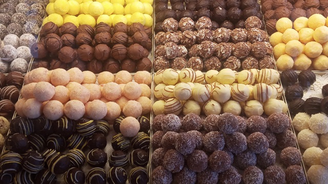 So erklärt sich die fantastische Auswahl an Kuchen, Torten und Pralinen. Für ein genüsslich verspeistes Stück Torte reicht die Zeit nun doch nicht, aber ein Espresso und eine Praline sind immer drin. Die überaus freundliche Bedienung sei hier besonders erwähnt! Auch der Gast, der „nur“ einen Espresso und „nur“ eine Praline bestellt, wird umfänglich bei seiner Pralinenwahl beraten.