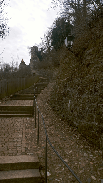 Apropos, das Burgrestaurant war geschlossen, aber in dem Fall vermutlich auch die alte Burgküche, irgendwo in den Gewölben? Das ist heutzutage meist der Fall, ich vermute, dass da irgendwelche kleinlichen gewerkschaftlichen und brandschutztechnischen Vorschriften Anwendung finden. Außerdem wußten die dort vermutlich gar nicht, was Kaffee ist, das wäre also auch nicht hilfreich gewesen.