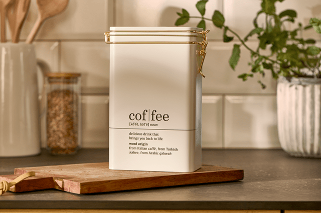 Wir finden COF I FEE ist ein Begriff, der geschützt werden sollte! Deswegen gibt es ab sofort die neue Aromadose mit Coffee-Dictionary Print. Denn Kaffee bedeutet: Wachmacher, Energiebringer, Genussmoment und Alltagsbegleiter – und die kostbaren Bohnen gehören sicher verstaut an einem dunklen, kühlen und trockenen Ort. Denn, für Kaffee gilt: je frischer, desto besser.