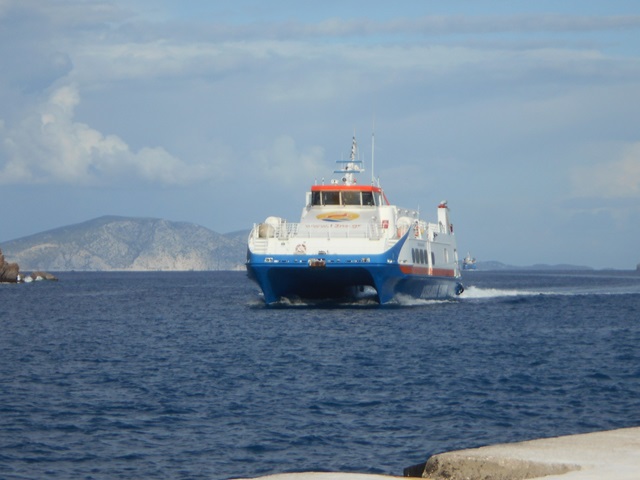Da kommt auch schon die Dodekanisos Pride um die Ecke, übrigens die Fähre, mit der ich am häufigsten gefahren bin. Es dürfte jetzt die fünfte Tour sein. Und schon ertönt das Signal, mit dem die Dodekanisos Pride die heilige Insel grüßt. Für uns der Ruf den Kaffee auszutrinken und uns auf den Weg zum Pier zu machen. Meine Mission auf Patmos habe ich erfüllt. Nun geht es zurück nach Samos.