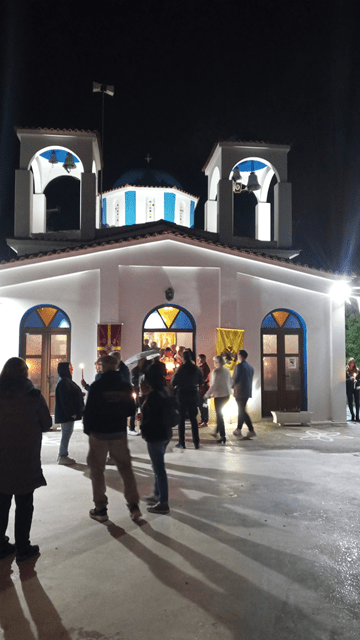 Schlag Mitternacht wurde die Kirche verdunkelt. Mit den Worten „Christos Anesti“ – Christus ist auferstanden – wird das Licht von Kerze zu Kerze weitergegeben. Empfängt man das Licht von seinem Sitznachbarn antwortet man mit „Alithos Anesti“ – er ist wahrlich auferstanden – das hatten wir vorsichtshalber auswendig gelernt.