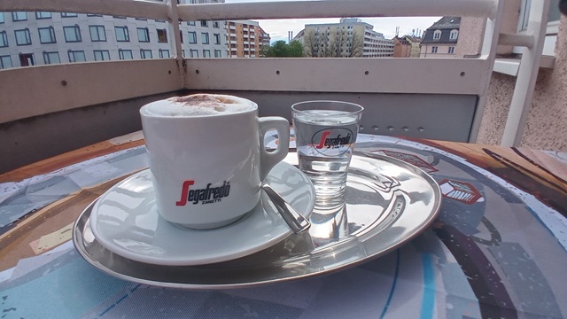 Für diesen Nachmittags-Cappuccino reicht es jedenfalls. Die Temperaturen sind ja schon recht hoch, wahrscheinlich höher, als für unser Klima zuträglich, aber hier oben weht gerne einmal eine steife Brise. Für ein Frühstück oder einen Nachmittagskaffee reichts, für ein Abendessen auf dem Balkon aber definitiv noch zu frisch. Aber das ist nur eine Frage der Zeit. Die richtige Tischwäsche dafür habe ich jetzt ja.