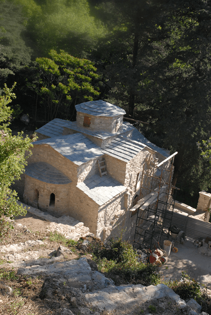 Einige der Bauelemente in der Kirche entstanden nach Schätzung des Professors Argyris Petronotis jedoch erst in der zweiten Hälfte des 13. bzw. in der ersten Hälfte des 14. Jahrhunderts. Aus der byzantinischen Periode stammen auch die vier Säulen aus weißem Marmor, die die Kuppel stützen und Säulenkapitelle korinthischer Ordnung haben- Bestandteile eines frühchristlichen Monuments.