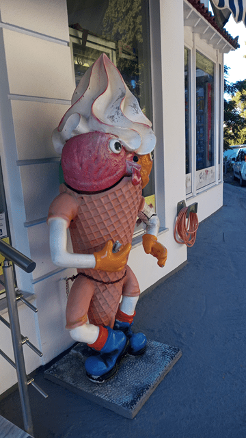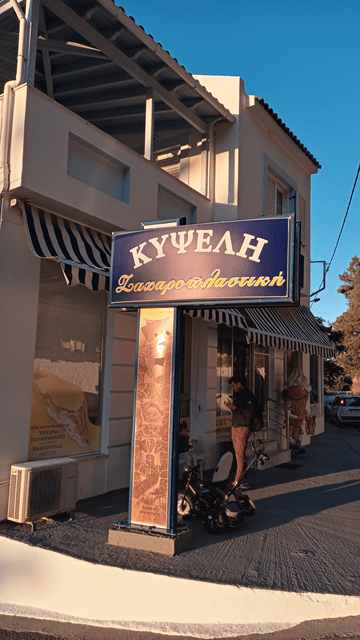In diese Kategorie gehört die Konditorei Kypseli auf Samos, zu finden in Agios Konstantinos und etwa auf halbem Weg zwischen Karlovasi und Samos-Stadt. Die Konditorei liegt in einer Kurve, doch das großzügig gestaltete Firmenschild und eine überdimensionale Eistüte machen ein Übersehen unmöglich. Ein Besuch lohnt sich schon ob der umwerfenden Auswahl. Und es war inzwischen kühl genug, um einen Transport zurück nach Ireon zu wagen.