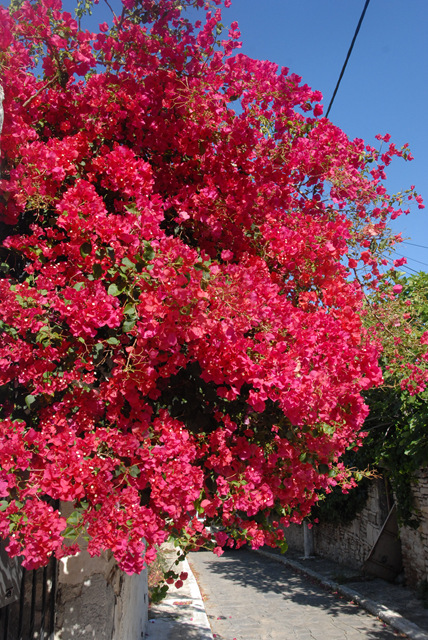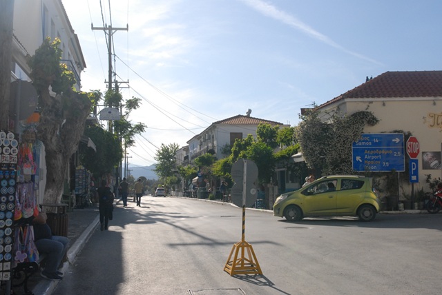 Die Hauptstraße, vom Flughafen kommend, zweigt im rechten Winkel Richtung Samos Stadt ab, eine natürliche Engstelle, an der die Bussfahrer mühsam vorbeikurbeln müssen. Dabei kommen ihnen immer wieder Touristen entgegen. Ich befürchte, dass es gerade deutsche Touristen sind, die hier auf eine vermeintliche Vorfahrt beharren wollen. Meist vergeblich, den die Bussfahrer sind noch beharrlicher. Noch rücksichtsloser sind eigentlich nur die Taxifahrer.