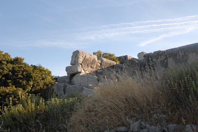 Was wir hier sehen ist die Westflanke der Mauer. Einige der Steine sind so gewaltig, dass man in früherer Zeit dachte, dass nur Riesen, die Zyklopen, so einer Mauer bauen könnten. Daher der Begriff Zyklopenmauer. Gut erhalten ist einer der 12 Zugänge zur Stadt. Ein großes Portal mit einem runden Torbogen aus gewaltigen Steinen, flankiert von zwei kleineren Pforten mit tonnenschwerem Türsturz. Die Mauern werden von der untergehenden Sonne ein letztes Mal in goldenes Licht getaucht. Dann ist Abend.