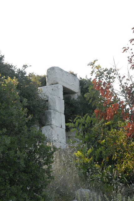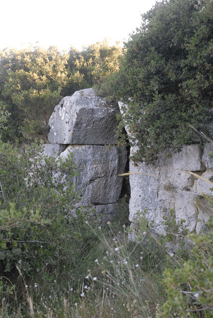 Einen Pfeil habe ich noch im Köcher: einen Teil der Stadtmauer des legendären Polykrates. Folgt man in Pythagorion der Straße Richtung Samos-Stadt, dann erscheint kurz nach dem Ortsende auf der linken Seite ein braunes Schild mit der Aufschrift „Ancient Fortification Walls“. Hier geht es nach links den Berg hoch. Die asphaltierte Straße wird zu einer Schotterpiste, von der man, kurz bevor es ins Tal hinunter geht, an einem verrosteten, unlesbaren Schild nach links abzweigt. Gerade, wenn man denkt, dass man sich verfahren hat, ist man fast da. Zwischen einer kleinen Kapelle und einem Silo geht der schmale, aber gut befahrbare Weg weiter, bis man nach etwa 150 Metern die Stadtmauern erreicht.
