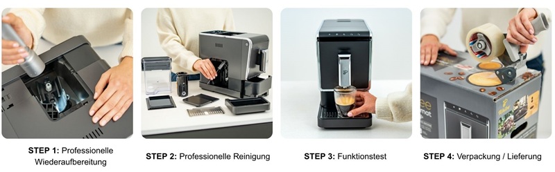 Tchibo Refurbished bedeutet: Geprüfte Qualität, professionelle Wiederaufbereitung und ein nahezu neuwertiges Nutzungserlebnis für Kundinnen und Kunden. Und das zu einem attraktiven Preisvorteil gegenüber Neuware. Ein doppelter Gewinn: Tchibo Refurbished verlängert den Produktlebenszyklus von Vollautomaten, reduziert Elektroschrott und trifft den Nerv der Zeit. Denn Nachhaltigkeit und bewusster Konsum sind für immer mehr Menschen wichtige Kriterien bei der Kaufentscheidung.
