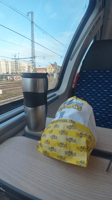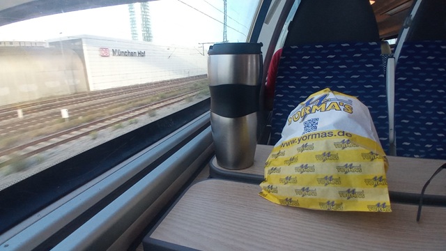 Für mich war dieser Yormas Ausgangspunkt für viele Reisen. Was lag näher, als sich auf dem Weg zum Zug dort noch zu verproviantieren? Und wo sonst am Bahnhof gab es eine Flasche Wasser mit 1,5 Litern Inhalt für 2 €? Nicht zu vergessen die leckeren Butterbrezn mit Schnittlauch! Und es gab gratis Sirup zum Pimpen des Kaffees. Und jetzt soll Schluss sein? Leider wahr! Der Umbau des Münchner Hauptbahnhofes macht es nötig. Aber für Ersatz ist gesorgt: zum Beispiel im Container an Gleis 11–14, im Sperrengeschoss U1/U2, im Elisenhof oder am Holzkirchener Flügelbahnhof. So habe ich hier also meinen letzten Yormas-Kaffee am Gleis 26 besorgt. Schnell eine Träne verdrückt und schon geht es weiter Richtung Bodensee…