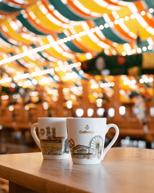 Um die langjährige Zusammenarbeit zwischen dem Schützen-Festzelt und Dallmayr zu feiern, wurde erst letztes Jahr eine neue Wiesn Haferl-Tasse designt, in der ausgewählte Heißgetränkespezialitäten serviert werden. Die liebevoll illustrierte Tasse zeigt das Schützenfestzelt auf dem Münchner Oktoberfest und das Dallmayr Stammhaus im Herzen Münchens. In der Mitte der Tasse thront die Bavaria. Die Statue der Schutzpatronin Bayerns gilt als bekanntes Fotomotiv auf dem Münchner Oktoberfest.