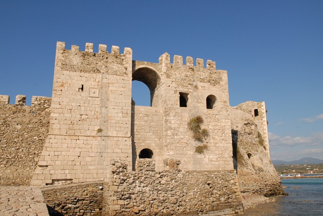Die Venezianer begannen mit dem Bau des prächtigen Seetors und die Türken vollendeten ihn. Ein schmaler, mit groben Steinen belegter Damm führt von hier hinaus aufs Meer zu einer winzigen befestigten Insel mit einem achteckigen Turm, den die Griechen Bourtzi nennen in Anlehnung an das aus dem osmanischen Türkisch stammende Wort burç (Bastion, Turm). Diese kleine, weit vorgeschobene Bastion wurde bald nach der Machtübernahme von den Türken im frühen 16. Jahrhundert errichtet und von allen nachfolgenden Mächten umgebaut und erweitert. Beide Stockwerke des Turms verfügen über Brustwehren für die Verteidiger und im unteren Stockwerk war sogar eine Zisterne eingerichtet worden.
