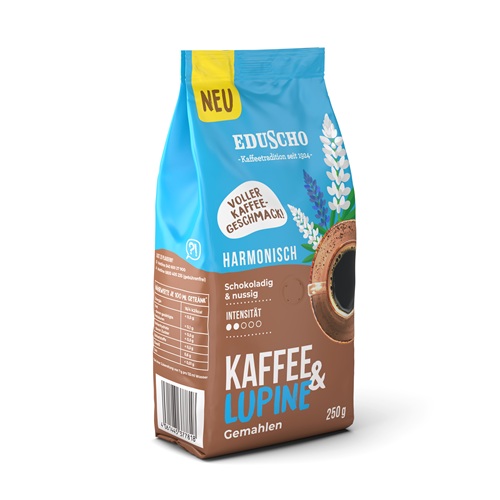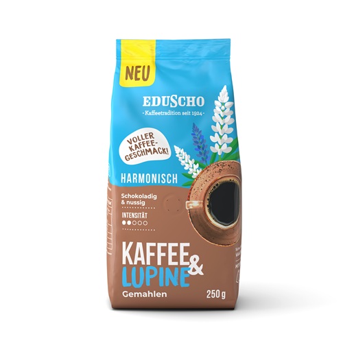 Eduscho steht für Kaffeetradition seit 1924. Eduscho steht aber auch immer wieder für Innovation. So wie bei der neuen Art Kaffee zu trinken: Kaffee & Lupine. Die überzeugt mit vollem schokoladig-nussigen Kaffeegeschmack – und das mit einem Süßlupinenanteil von 51 Prozent. Dafür werden die Lupinenkerne der Süßlupine, also Hülsenfrüchte, genau wie Kaffeebohnen traditionell geröstet. 49 Prozent Röstkaffee runden das neue Kaffeeerlebnis ab.