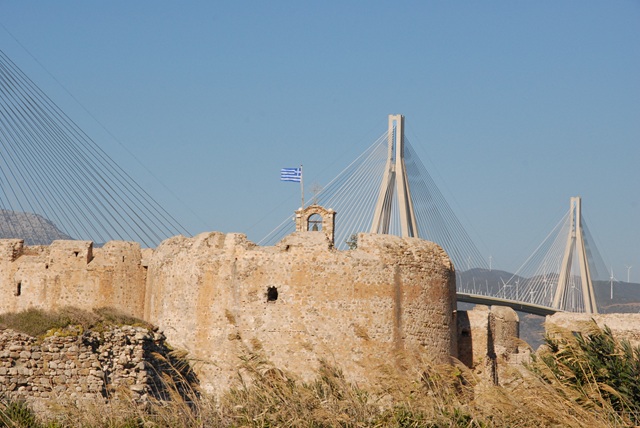 Wir verschnaufen hier nur kurz. Hier musste ich auch eine Entscheidung treffen: Brücke oder Fähre? Ich entscheide mich für letzteres, denn hinter den Mauern der Festung zeigt sich schon das nächste Ziel der Etappe: die Rio-Antirrio-Brücke. Aber von diesem modernen Wunderwerk erzähle ich Euch morgen.