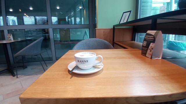 Kleiner Schönheitsfehler: das Kanne Café ist in Haus A neben dem Haupteingang, meine Station ist allerdings in Haus B. Für einen kurzen Gang auf einen schnellen Kaffee für mich in meinem damaligen Zustand zu weit. Trotzdem habe ich diese Distanz wenigstens einmal überwunden und einen Cappuccino genossen. Für den Kuchen kam ich leider zu spät. Allerdings steht zu befürchten, dass sich das bei Gelegenheit sicher nachholen lässt. Für diesmal lasse ich es bei einem Besuch bewenden.