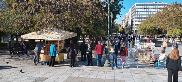 Gelb wie die Stände sind übrigens auch die Taxis in Athen. Dabei sind die Taxis dort vergleichsweise billig. Zwischen fünf Uhr früh bis Mitternacht kostet eine Fahrt vom internationalen Flughafen zum Omonia etwa 27 Euro, was in etwa einem Euro pro Kilometer entspricht. Nachts kostet die selbe Tour etwa acht Euro mehr. In letzter Zeit machen die Taxis aber mehr durch Streiks von sich reden. Momentan sind sie in einem Dauerstreik. Sie demonstrieren gegen eine Gesetzesnovelle des Transportministeriums. Darin ist unter anderem vorgesehen, dass Taxis, die stillgelegt werden, nur noch durch E-Autos ersetzt werden dürfen. Außerdem soll es verschiedenen privaten Unternehmen erleichtert werden, in die Taxibranche einzusteigen – bisher waren die entsprechenden Lizenzen streng reglementiert. Protestaktionen an Flughäfen und Häfen werden nicht ausgeschlossen. Morgen geht es weiter…