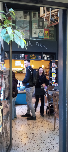 Little Tree Books & Coffee, Kavalloti 2, Athina, Griechenland, Öffnungszeiten: täglich außer Montag 09:00 – 00:30 Uhr. Quellen: Unternehmensseiten, Spotted by Locals.
